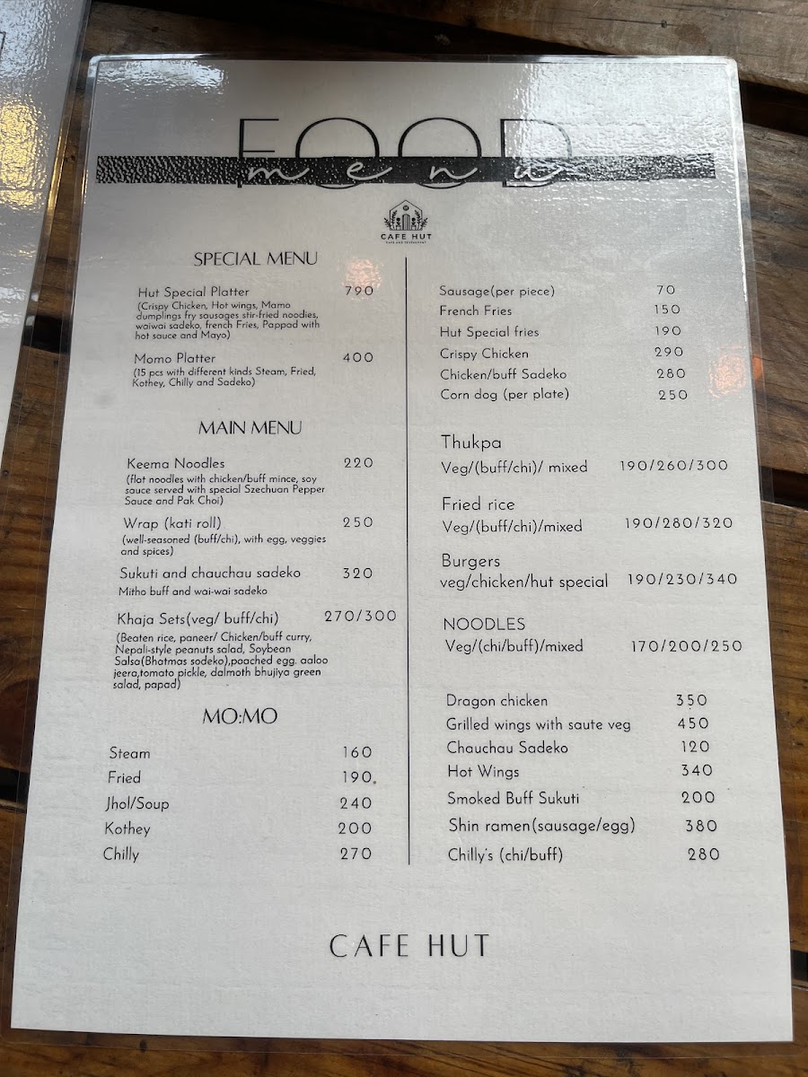 Hut Cafe Menu